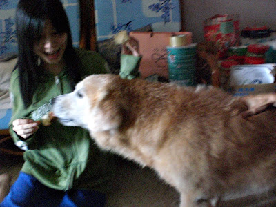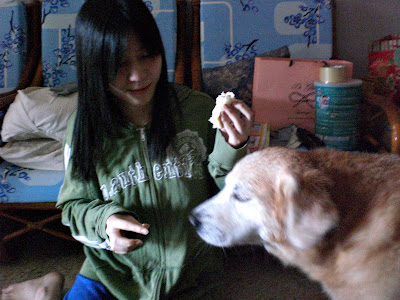 Were feeding boy boy the breads which his "mummy" baked for him. Yes, I'm mentioning my friend's mummy. Aunty is a ICHIBAN housewife. Because aunty not only good in cooking and baking but she also good in D.I.Y. some house's decorations.