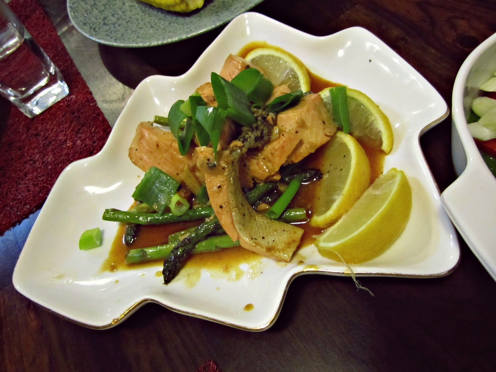 My Salmon with Roasted Asparagus and Lemon Sauce was done.