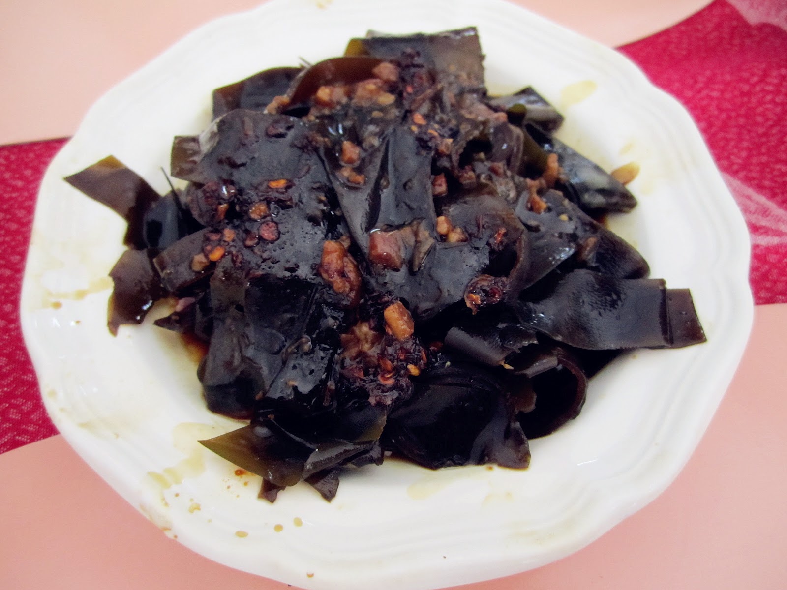 This seaweed was combined with pork mince unlike the one in Japanese/Korean restaurant. It had a strong odor which slightly resembled stinky tofu. I couldn't accept the smell of this seaweed at the very beginning but after few bites the stinky odor slowly turned into fragrance. Plus, the seaweed was very long and thick! I am not a fan of stinky tofu but I like it because it was seaweed =)