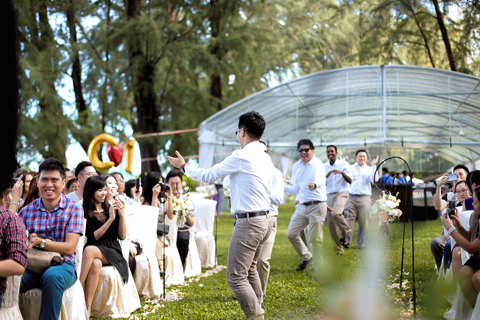 Groom and groomsmen had a great dance instead of the traditional wedding march