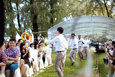 Ah Boy got the flower bouquet during the bouquet tossing!!